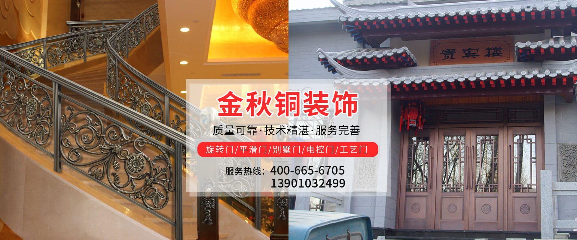 2016全國建筑材料科技創(chuàng)新獎獲獎項目:景泰藍現(xiàn)代生產(chǎn)應用工藝北京金秋銅裝飾材料有限公司位于北京市亦莊經(jīng)濟開發(fā)區(qū)中關村科技環(huán)保園區(qū),是專業(yè)生產(chǎn)銅裝飾材料及設計、開發(fā)、制造、施工、售后服務為一體的大型綜合企業(yè)。可承接建筑銅裝飾工程及五星級酒店、別墅、博物館、樓樘管所等高檔銅裝飾項目;生產(chǎn)各種規(guī)格的旋轉門、平滑門、別墅門、電控門、工藝門、旋轉護欄、屋頂銅飾防水瓦、浮雕壁畫、青銅古典家具及鑄造青銅器。1...